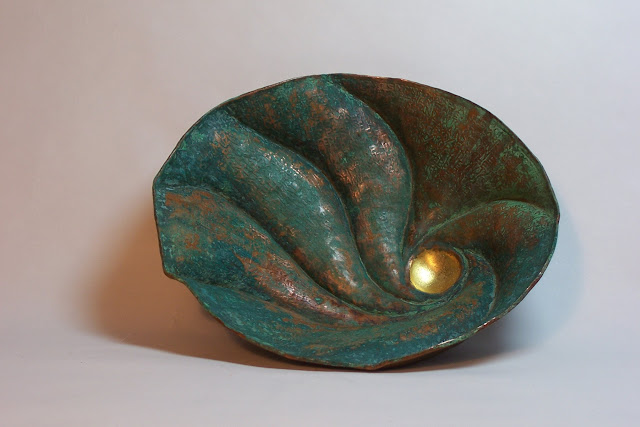 Dragon's Egg - raised and chased copper, sterling silver rim, approximately 3" x 3" x 3", interior gold leafed.